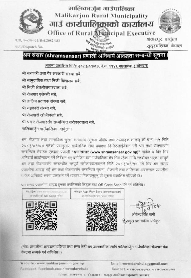 श्रम संसार प्रणालीमा आबद्ध हुने सम्बन्धि सूचना ।