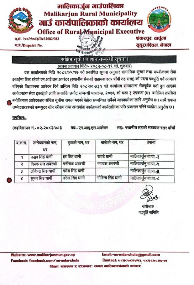 संक्षिप्त शुचि प्रकाशन सम्बन्धि सूचना ।