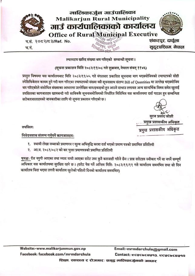 ल्यापटप खरिद सम्बन्धि सूचना ।