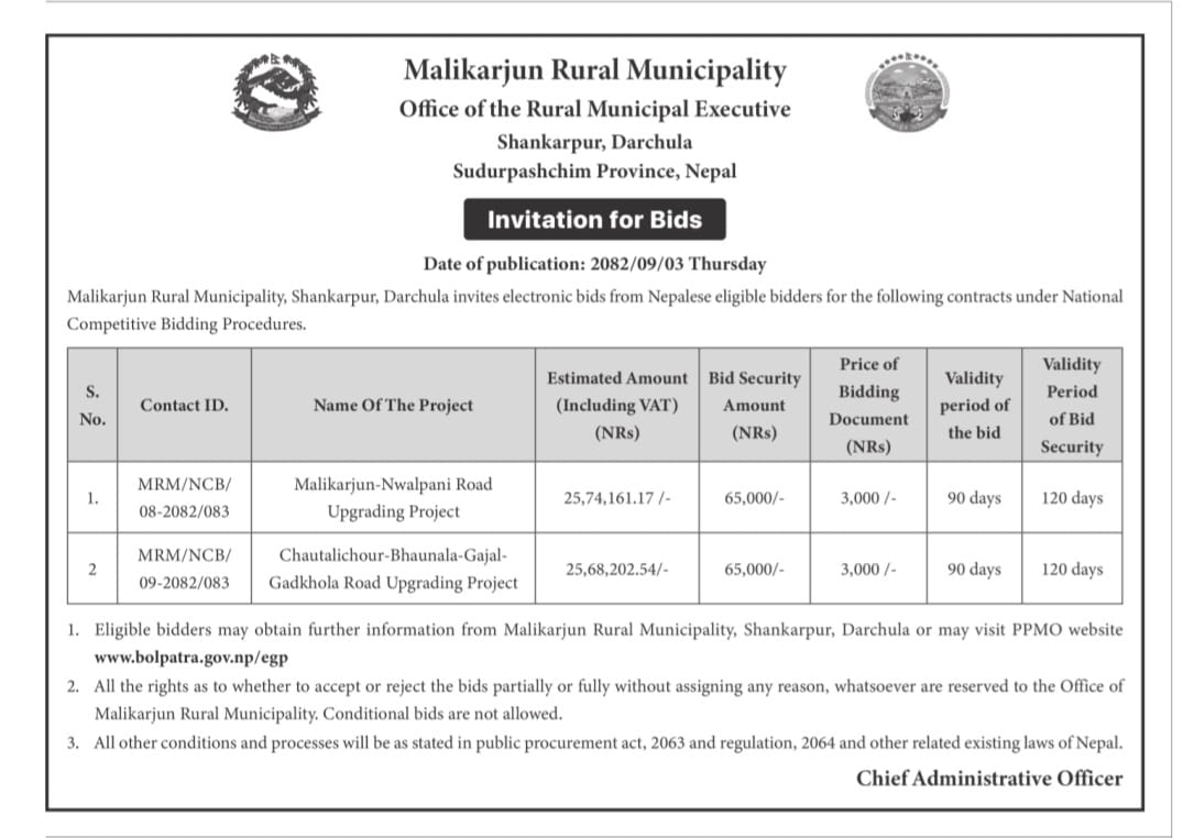 सार्वजनिक खरिद/बोलपत्र सूचना